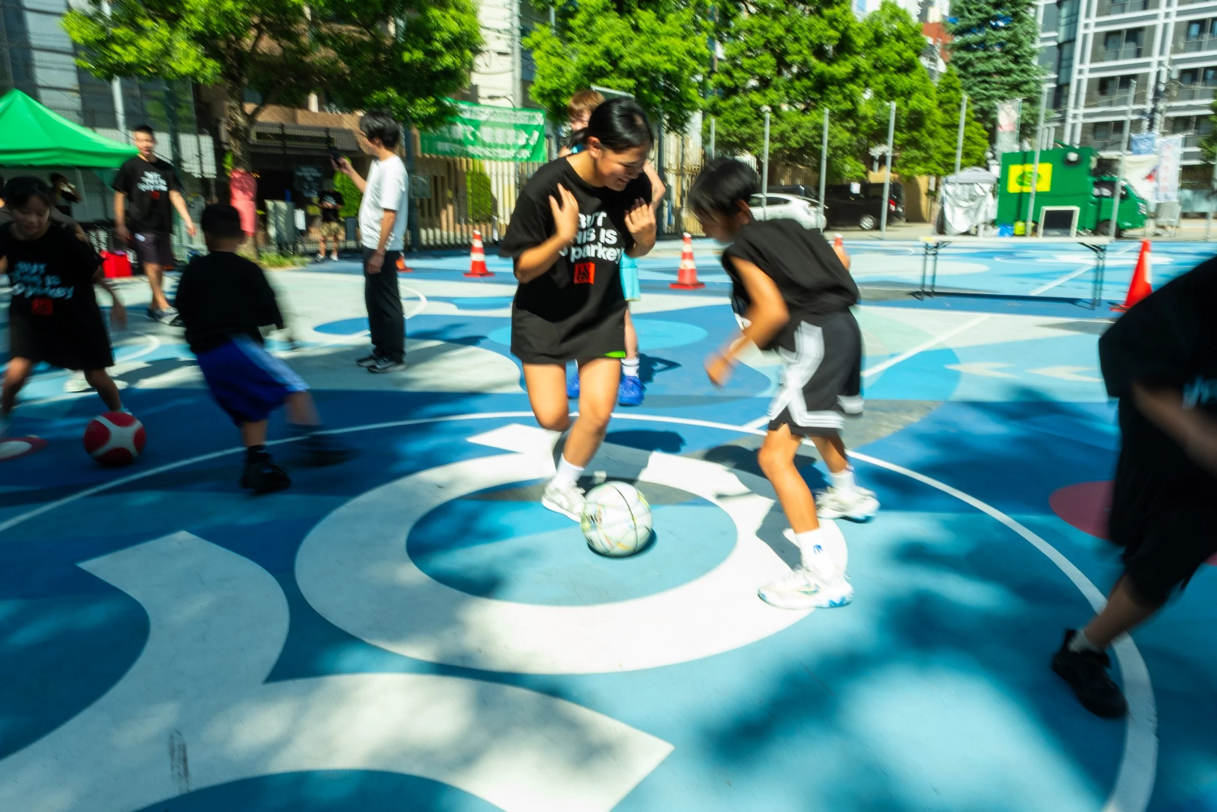 アレックスがそこにたどり着くまでにはいろいろな経験と苦労を重ねています。go parkeyはそんな彼と一緒に、時にピックアップゲームをしたり、F.A.T.というストリートブランドの撮影でニューヨークを旅してきました。ニューヨークではハーレムのセント・ニコラスのアートコートでローカルとピックアップをしたり、イースト・ヴィレッジのプレイグラウンドでもプレーしたり、4TH STREETやブロンクスのラッカーパークやダイクマンにも行ってきました。ラッカーパークでは「俺がここのレジェンドだ」と自称しちゃうけどほんとにその通りのフーパーお爺様やMCやコーチともセッション。ちょうどキッズのサマーリーグが開催されていて、「撮影していけ。どんどん撮れ。go parkey? F.A.T.? いいね。よし、ラッカーのキッズ・リーグとgo parkeyのKDパークのキッズといつかコラボしよう!」なんて言われて、こちらも「ラッカーのキッズが東京でペイント、東京のキッズがブロンクスでペイント、そしてゲームするとかいいね!」なんて返して、盛り上がりました。