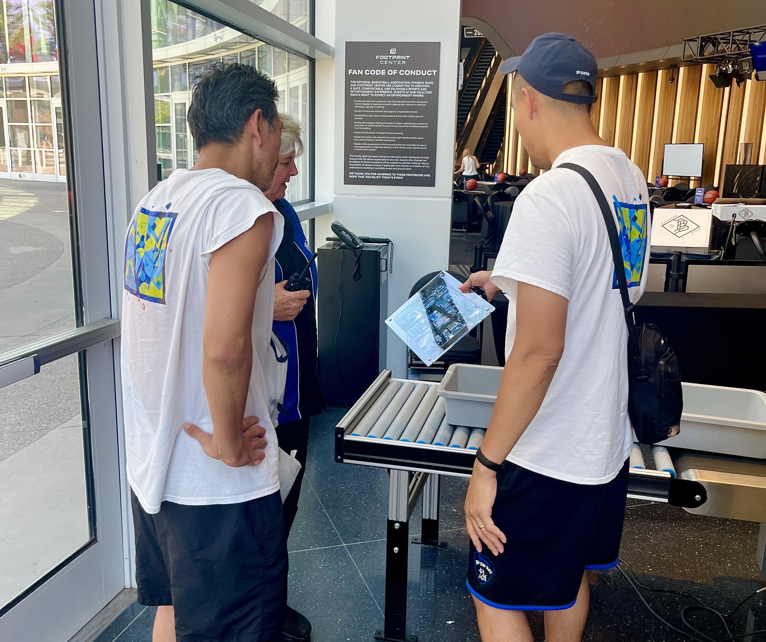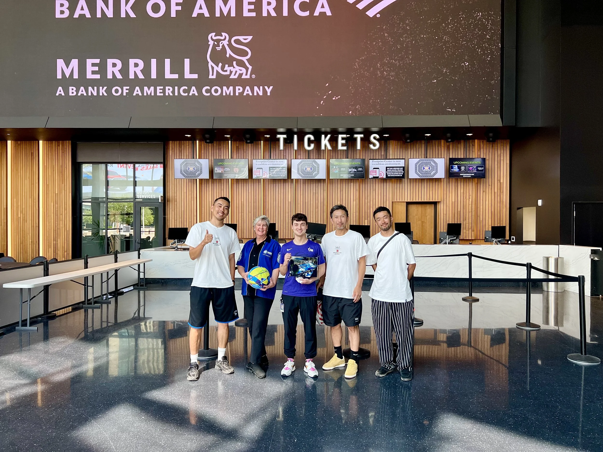 ただ、そこへ行けば球団職員はいるはずだし、エグゼグティブの誰かがいる可能性もある。そういう信頼できる人物にハンドオーバーして託せば、KDの手に渡る可能性が高い。だからって、アポなんてものは取る気もなかった。日本でも飛び込み営業されてうんざりする会社の人間をたくさん見ているから、アポなしなんて破廉恥なのは百も承知。でも、ファンとしてサインをねだりに行くわけじゃない。もちろんKDもサンズのブッカーも好きだけど。で、行ってみたよ、フットプリントセンター。セキュルティチェックのところで、家族代々サンズファンでスタッフだったというような風格が漂うスタッフのおばさまにガツンと足止め。当然だ。写真も撮るな、なにもするな。で、なんだちみたちは? という流れ。そこで、『別の仕事でアリゾナに来たので、そのタイミングで、我々がリノベーションした東京の大久保公園にドネーションしてくれて、自身のSNSでも発信してくれてるKDに、その記念品をハンドオーバーしたくて、アポなしも確信犯で来てしまった。だから、球団スタッフにこれを託すことはできないか』と。